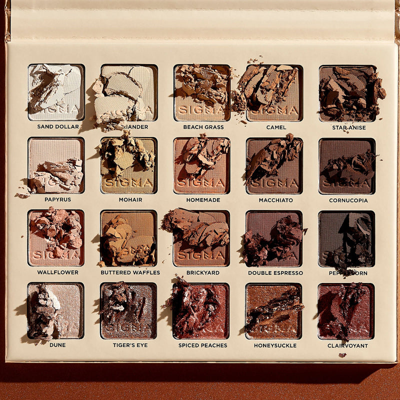 Featuring 14 neutral to bold shades of eyeshadow in matte, shimmer, and metallic finishes, the Sigma Beauty Ambiance Eyeshadow Palette comes with a dual-ended brush for flawless application.